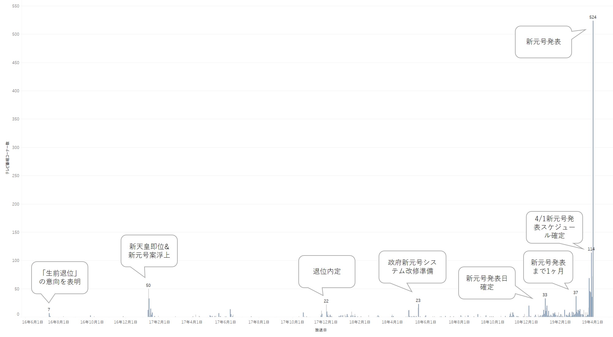 最後に2016年からのテレビ番組における「元号」の盛り上がりを図にしてみました。