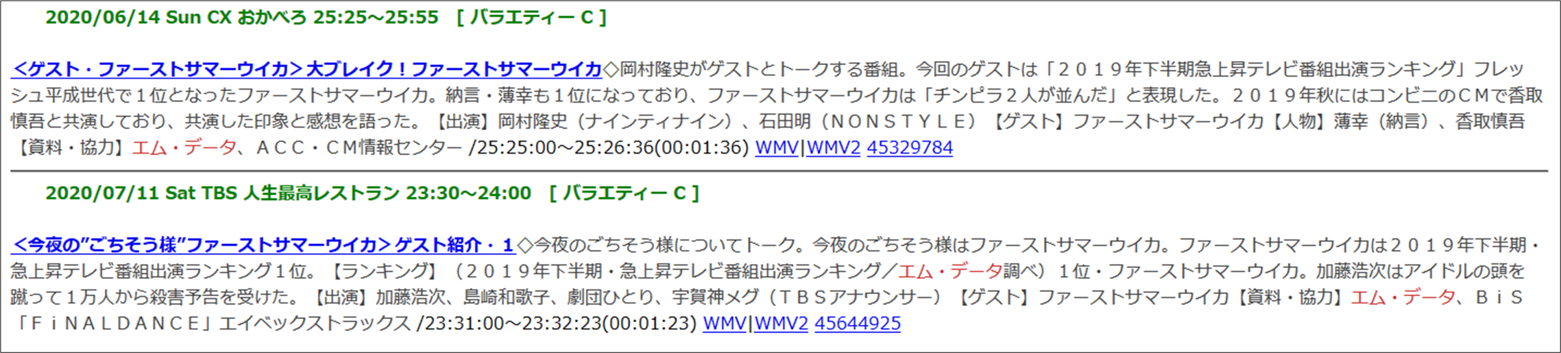 たとえば弊社のことをテレビで取り上げていただく場合は、多くがTVメタデータを番組内で紹介していただく場合です。実際に弊社がテレビで取り上げていただいた時のTVメタデータを見てみましょう。