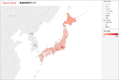 - Twitterユーザーの都道府県別によるタレント支持度合マップ
