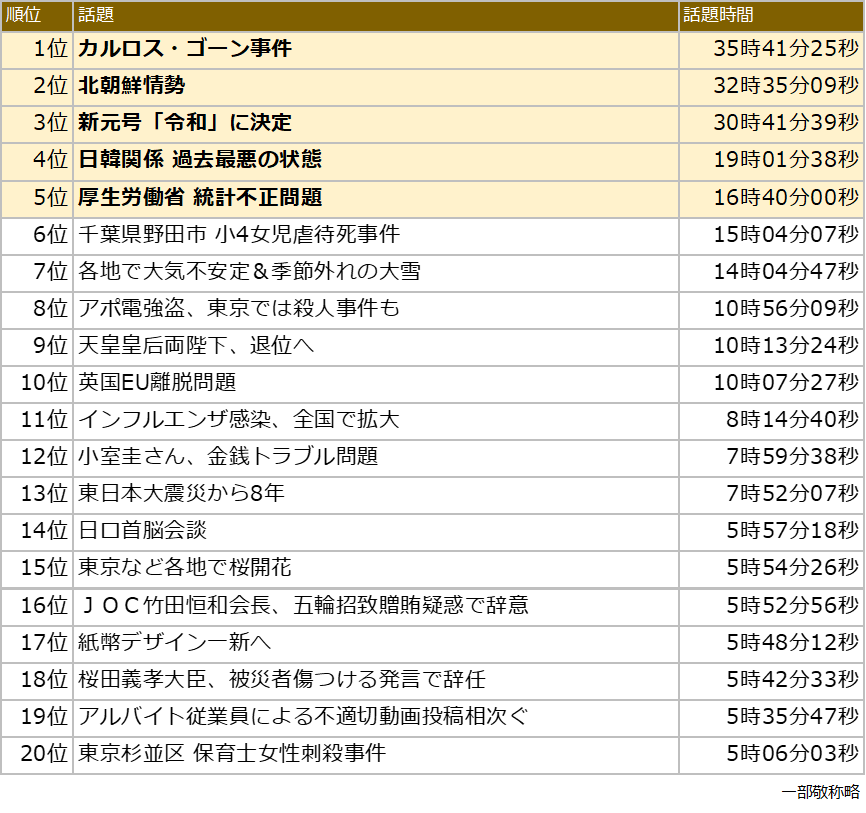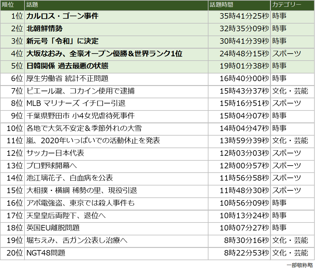 ■平成最後のTVニュースランキング(時事)