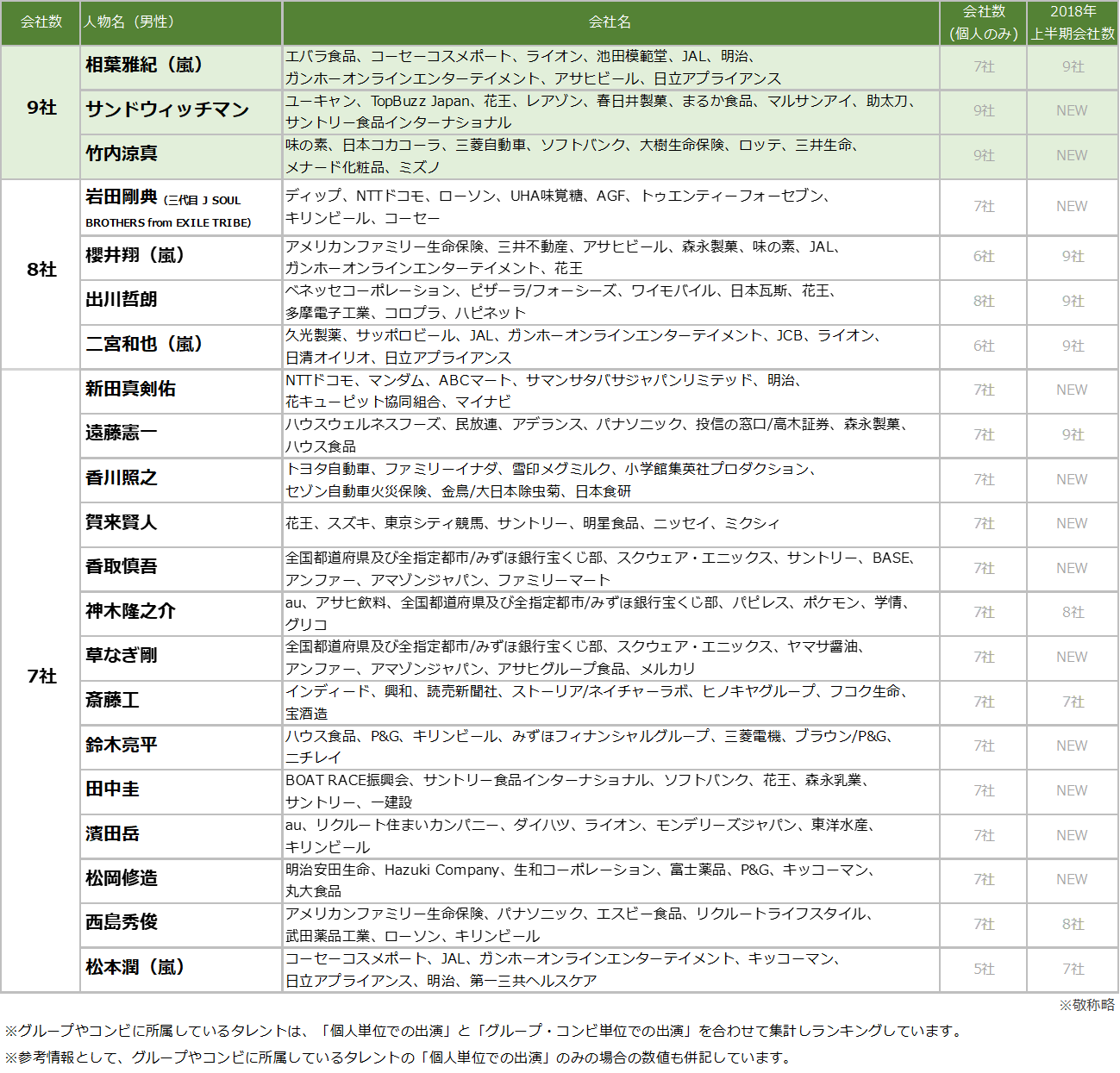 ■2019年上半期TV-CMタレントランキング