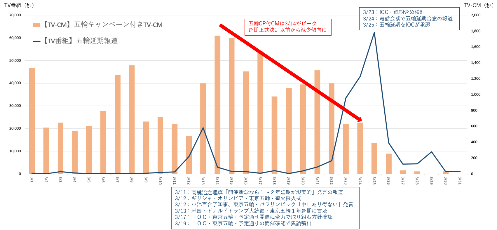 五輪キャンペーンCMは五輪正式延期決定の2/24前から出稿減。
