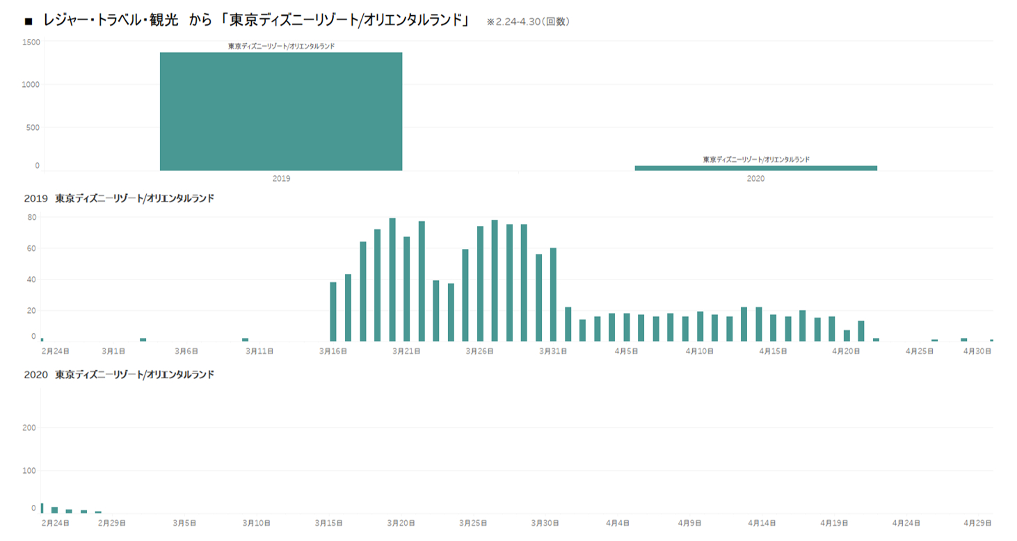 ■レジャー・トラベル・観光 →「遊園地」ジャンル、特に「東京ディズニーリゾート」が激減