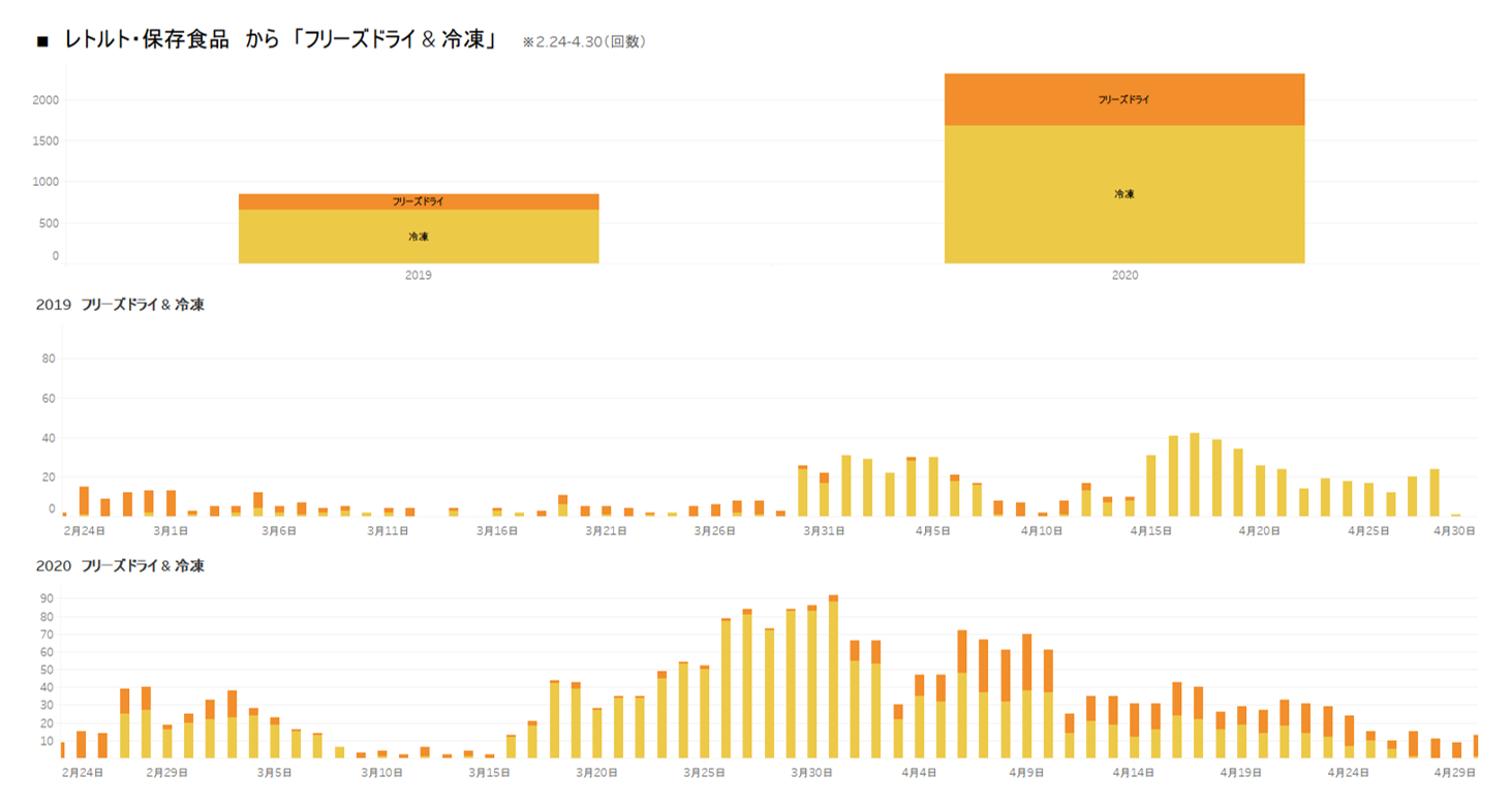 ■レトルト・保存食品 →「フリーズドライ」「冷凍食品」で増加